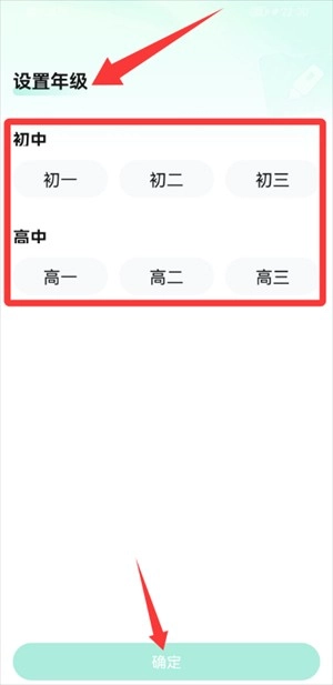 1、在应用内设置学习阶段,选定初中或高中的具体年级后确认。