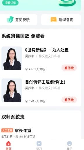 3、高清录播课程, 学生可以轻松的去回看每一次的直播课,巩固知识点。