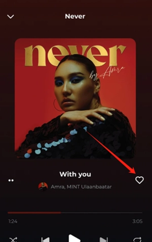 只需轻点音乐就能播放,在播放界面点击红心,就能把它收藏到个人歌单里。