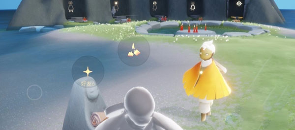 1、游戏中不是好友的玩家是灰色的模型,玩家靠近后可以看到一个蜡烛的按钮,点击后可以给对方赠送蜡烛