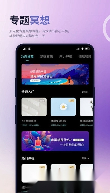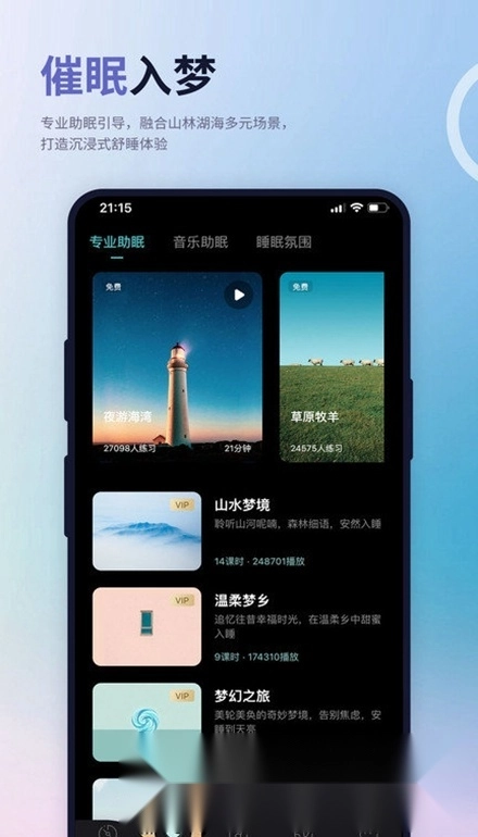 冥想结合脑电波模式,致力于辅助用户实现深度放松,提升睡眠质量。