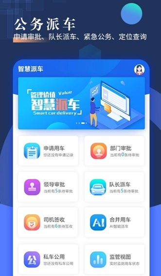智慧派车是一款面向汽车审批派车办公场景打造的移动应用,致力于借助智能化方式提升派车效率,优化审批流程,为企事业单位提供高效且便捷的派车服务。
