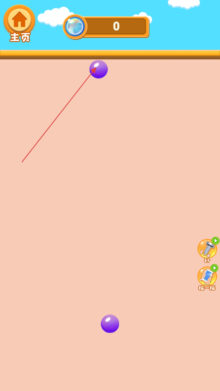 点击屏幕发射紫色泡泡,碰撞同色泡泡消除得分。