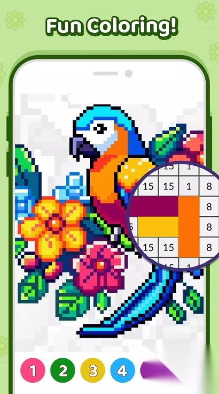 海量像素涂色模板,风格多样,题材丰富,满足各种审美需求。 2、独家导入功能,让你将照片变成专属像素画,定制你的涂色作品。 3、每日图案更新,保证每次打开游戏都有新内容可探索。