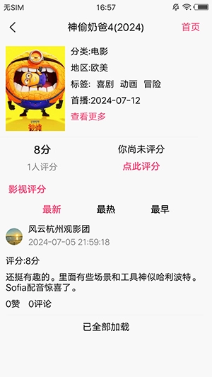 便捷搜索:支持按最新上映、评价数量最多、评分最高等不同分类维度进行检索,助力用户更高效地找到心仪影片。