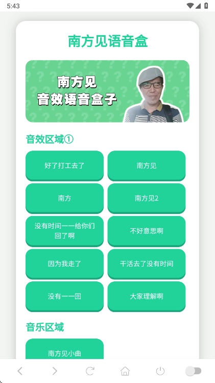 南方见语音盒是一款集合了超多热门梗的语音盒子软件,刷手机刷到南方见相关内容时就觉得特别搞笑,现在有人专门做了这个语音盒,能让大家沉浸式纯享,简直是打工人必备的趣味语音工具,太有意思了。在这里,你可以在聊天中展现个性,证明自己的有趣灵魂,还能实现个性化表达,享受声音带来的欢乐,解锁另类的交流方式。你还能灵活调整语音内容,设置循环播放,让日常生活变得更有乐趣。