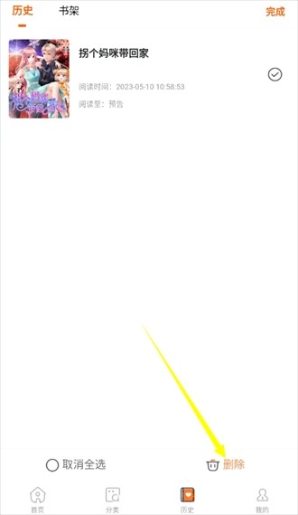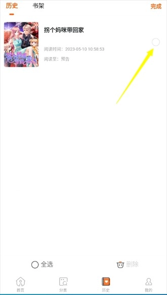 3、点击后仅能进入编辑页面,找到需要取消收藏的漫画,点击其后方的圆形选择框即可。