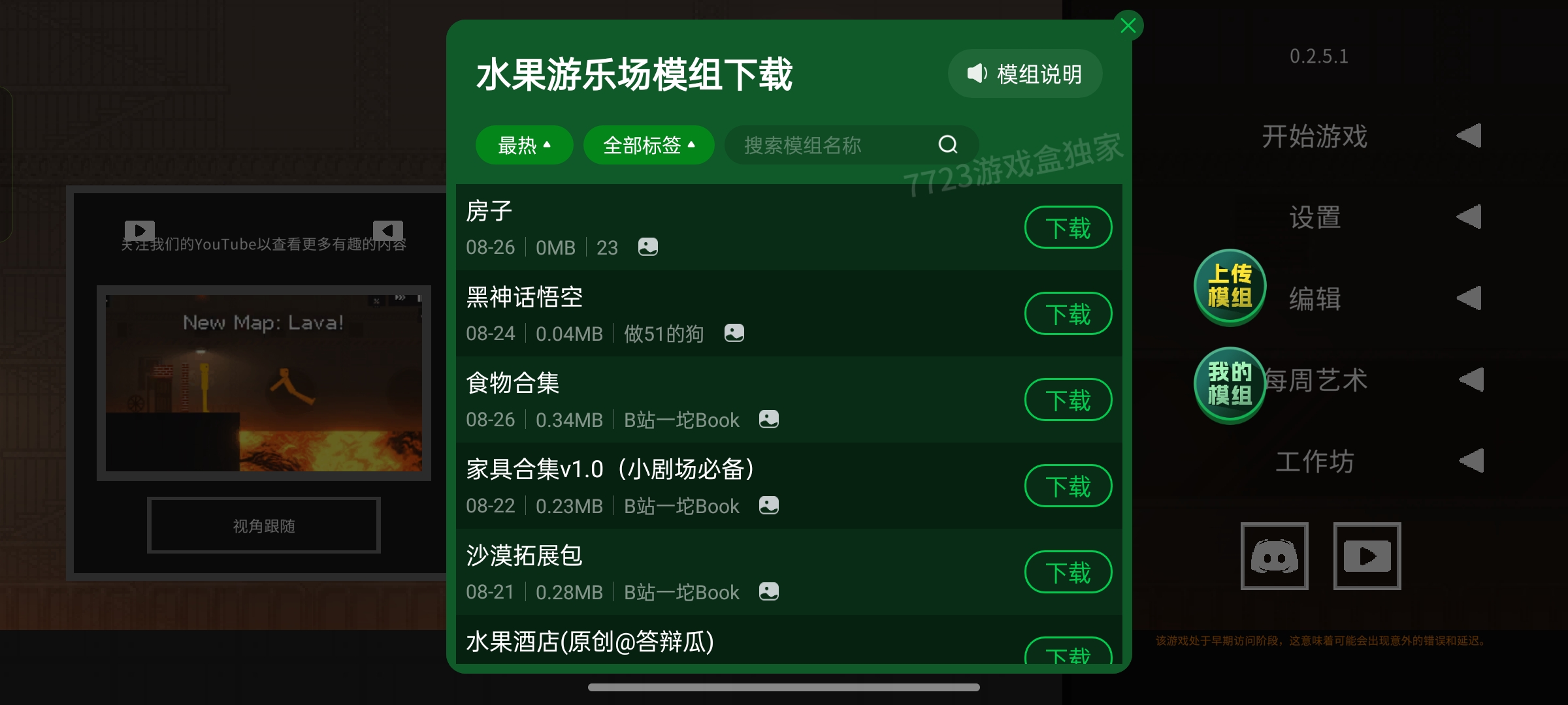水果游乐场汉化版内置模组是一款妙趣横生的沙盒创意游戏。汉化版让玩家摆脱语言障碍,尽情探索。内置模组更是丰富多样,极大拓展游戏乐趣。在这里,水果摇身一变成为主角,你能运用各种物理机制,搭建奇思妙想的装置,比如水果弹射器、滚动轨道。模组中还有新奇道具与角色,助你创造独特场景。无论是建造充满挑战的关卡,还是打造欢乐的水果派对,都能随心所愿,在创意与欢乐的水果世界尽情驰骋。