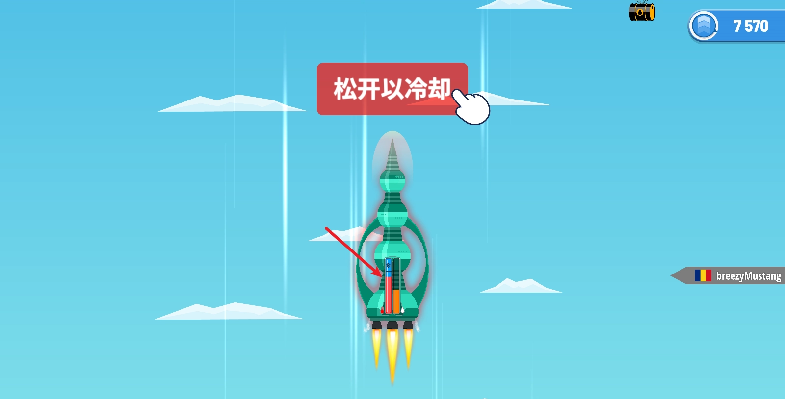 如果温度条满了,火箭会直接的爆炸。