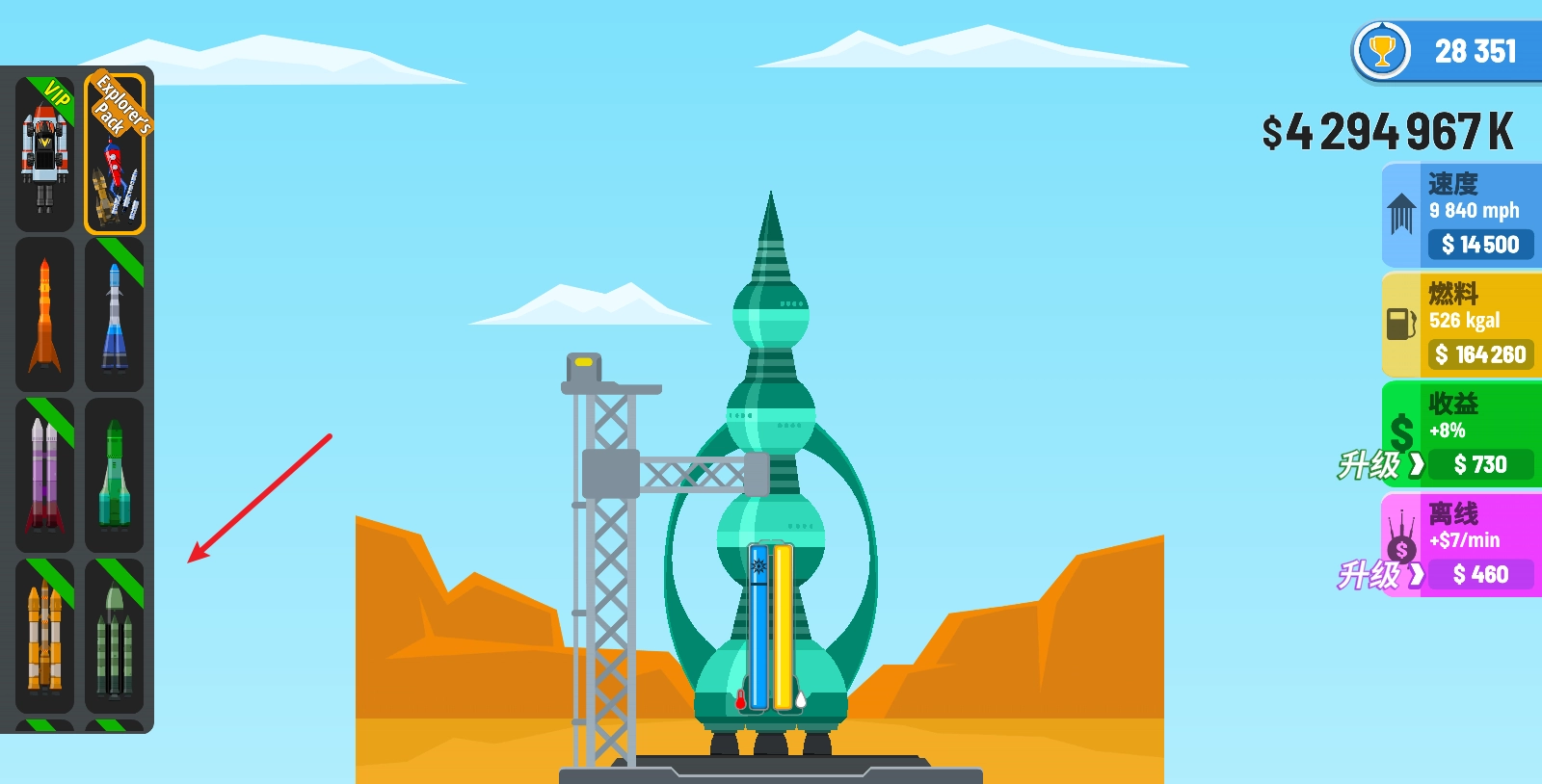 左侧的火箭图标中,我们还可以自由的挑选各种火箭。
