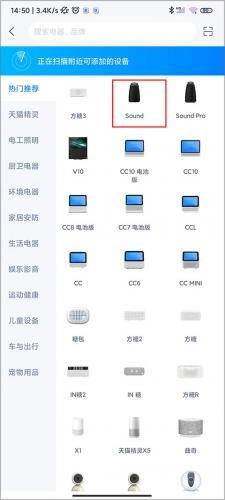 2、点击天猫精灵,选择对应的精灵型号。