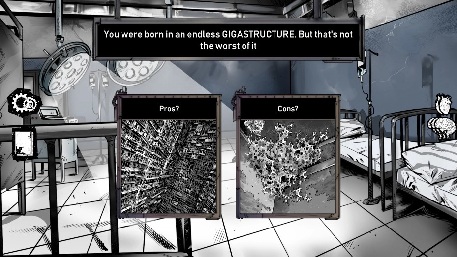 6、请注意屏幕右侧的“心脏”与“大脑”标识,您所做的部分选择可能会对这两者的数值产生消减或增加的影响。