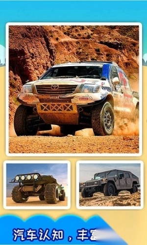 每完成一幅拼图,就能解锁新的车辆图案和关卡内容,以此鼓励孩子反复尝试不同车型的拼图,帮助他们提升观察力与动手能力。