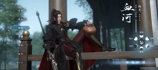 血河与其他职业最显著的区别在于其独有的“铁骑”技能,该技能能使血河进入骑马战斗状态,相应地,其他技能也会发生一定变化;血河职业的机动性极高,防御力处于中等水平,上手难度也为中等。