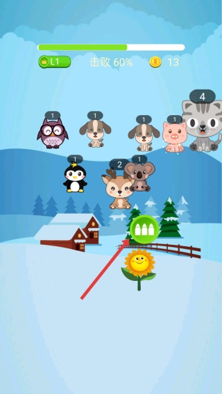 当界面呈现击败进度时,持续操控角色,击败更多动物,获取道具,增强自身战斗力,以便更有效地攻击小动物。