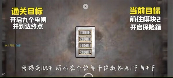 21、接着回头左转前往模块2,密码是1004 所以在个位与千位数各点1下与4下