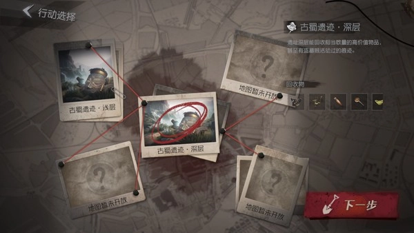 3、这里以摸金撤离为例,选择遗迹浅层或者深层;