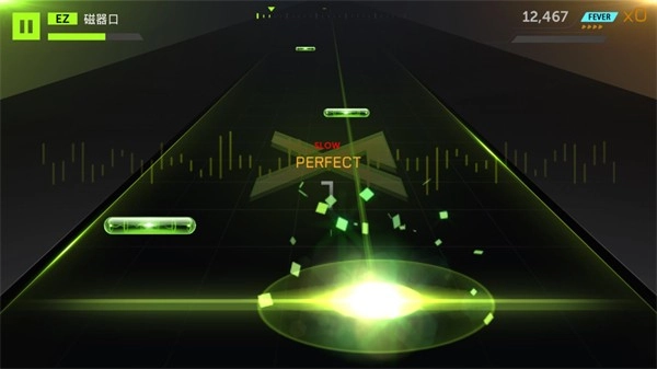 4、正式开始后,玩家要在上方的音符落到底部线条的瞬间点击屏幕来获取分数,连击次数越多,能得到的分数加成也就越高。
