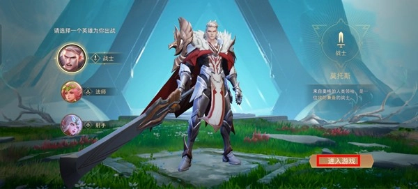 3、进入游戏之后,要在三种英雄中选择你喜欢的,选择之后点击进入游戏,然后就注册完毕了。