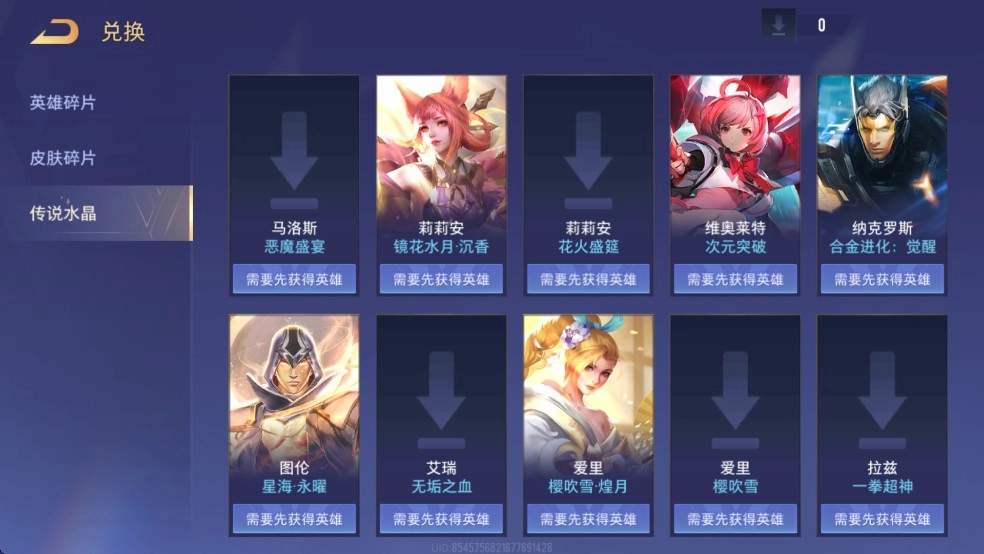 当你同时拥有该英雄和传说水晶时,就能用传说水晶兑换这款皮肤啦
