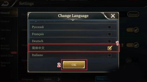 4、选定简体中文后,游戏会提示需重启,点击ok即可重启游戏;