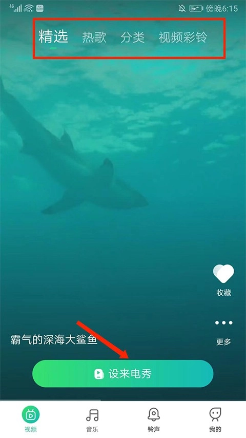 在视频界面,用户能够挑选心仪的视频设置成来电秀,涵盖精选、热歌、分类以及视频彩铃等不同类型,可依据个人喜好进行选择。