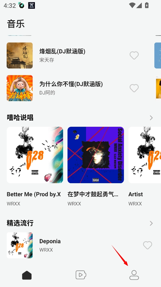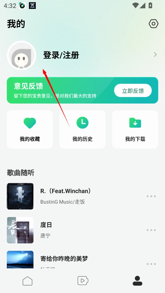 打开声玩音乐后,能看到界面分为视频、音乐、铃声和我的这几个分栏。