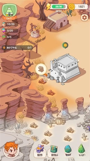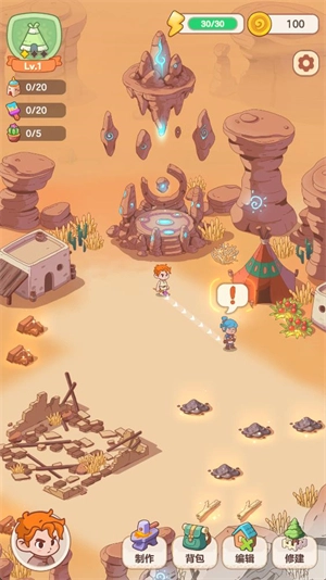 制作与建造:点击“制作按钮”用资源制作材料,站在废墟旁点击“锤子按钮”修复建筑。