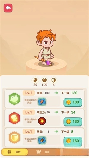 在大地图界面点击左下角的头像,就能对主角进行升级操作、装备使用以及技能更换。