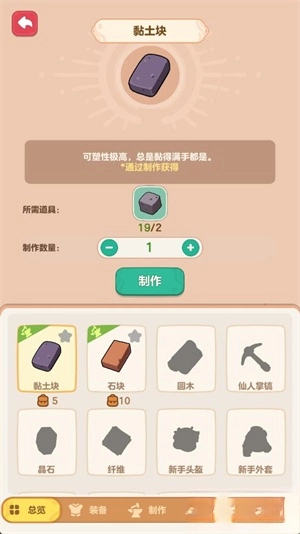 点击下方的制作按钮,就能利用采集到的资源制作出各类材料,这些材料可用于协助你修复建筑。