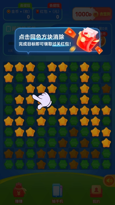3、点击同色方块消除完成目标即可领取过关红包
