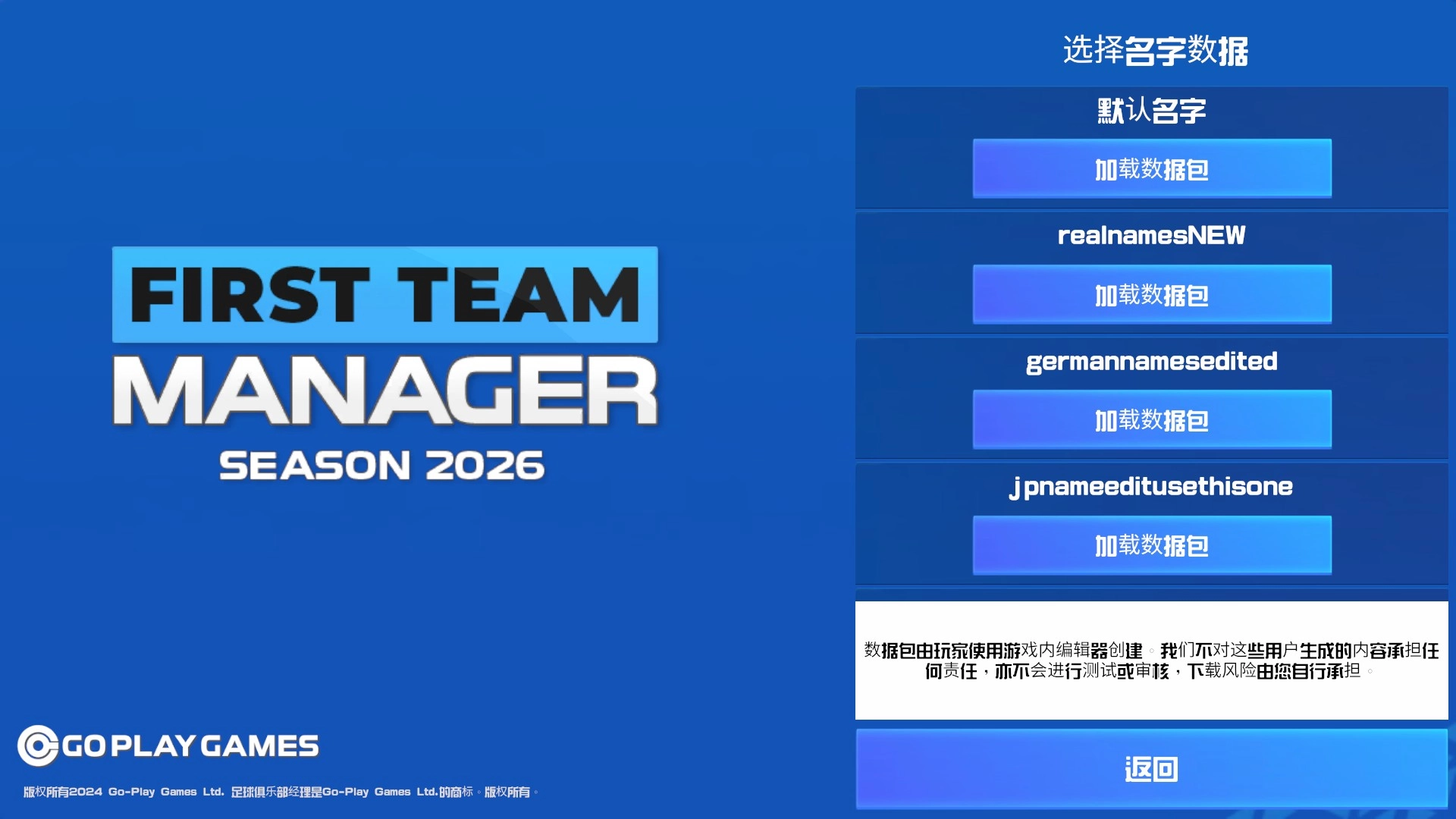 点击开始游戏后即可选择名字数据包定义个人数据;