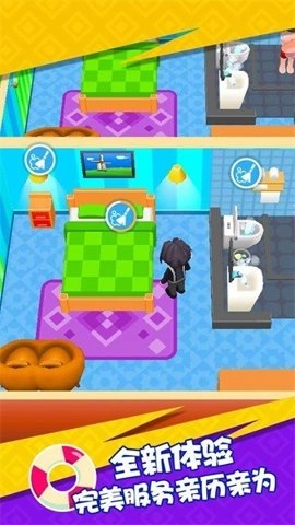 玩家能够借助雇佣员工并科学分配岗位来提升服务品质,减轻管理方面的负担。游戏里的员工可通过完成挑战增强技能,玩家要依据不同的需求调整员工的工作部署,以此最大限度提升客户的满意程度。游戏还配备了简易便捷的清洁系统,玩家只需轻点一下就能完成房间的卫生清理,大幅简化了操作步骤,让玩家可以更专注于经营策略的规划。
