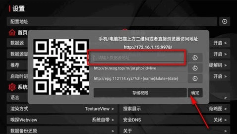 3.点开最上面的配置地址,将需要加入源文件复制到上面,也可以用手机扫码浏览访问地址。