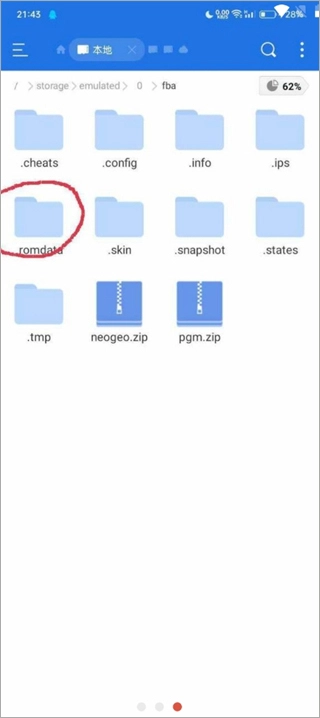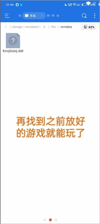 3、把dat文件放入fba/.romdata目录,游戏文件需自行新建一个文件夹存放其中。