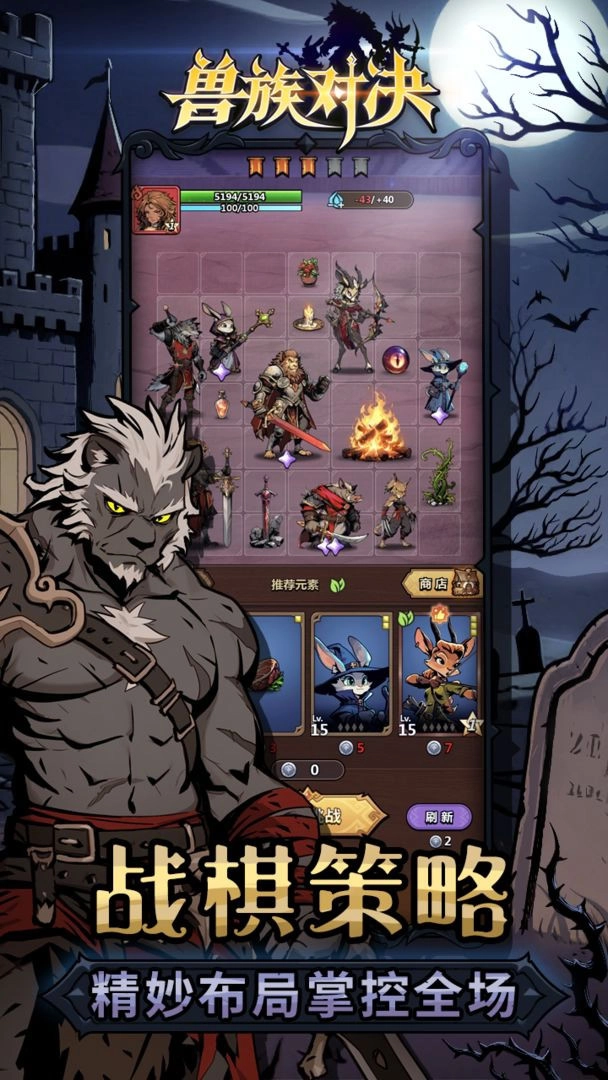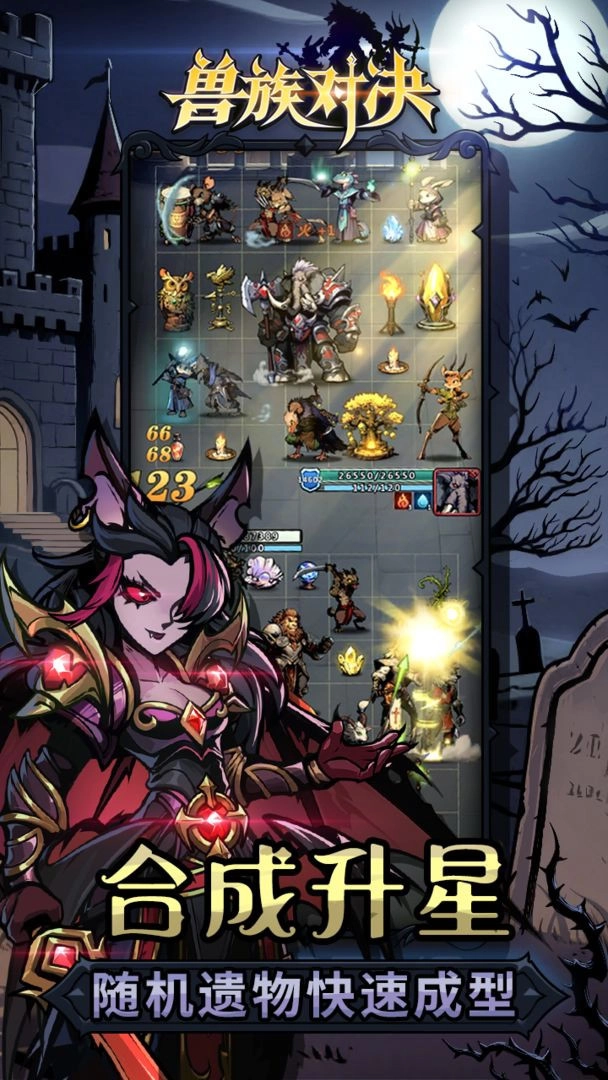 多样化兽族战士:提供数十位技能各异的兽族战士,支持自由招募与搭配,打造专属战斗阵容。
