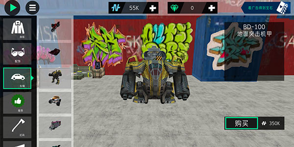 1、首先我们打开游戏的商城界面,在车辆分类中找到机甲巨人。