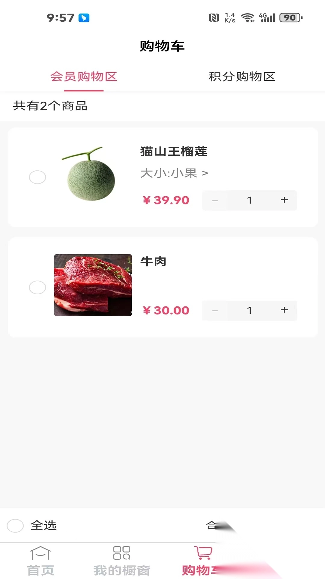首页设有会员购物区与积分兑换区两种不同板块,用户可根据需求自由选择。