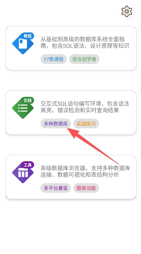 内容整体分为教程、实践、工具三大板块。其中教程部分包含17章课程,专为初学者打造,全面覆盖SQL核心知识体系,能够适配学习者从入门到进阶的全流程学习需求。