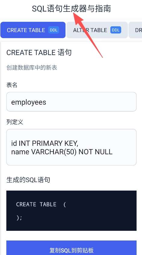 具备语句生成能力,借助SQL语句生成器,只需填写相关信息即可生成对应的SQL语句,并且可以直接复制使用。