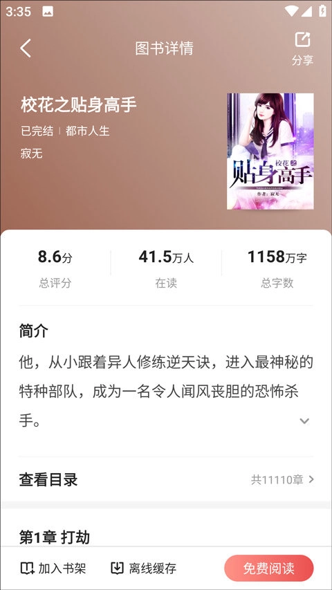 平台上所有的小说书籍,用户都能自由阅读,充分满足您的阅读需求