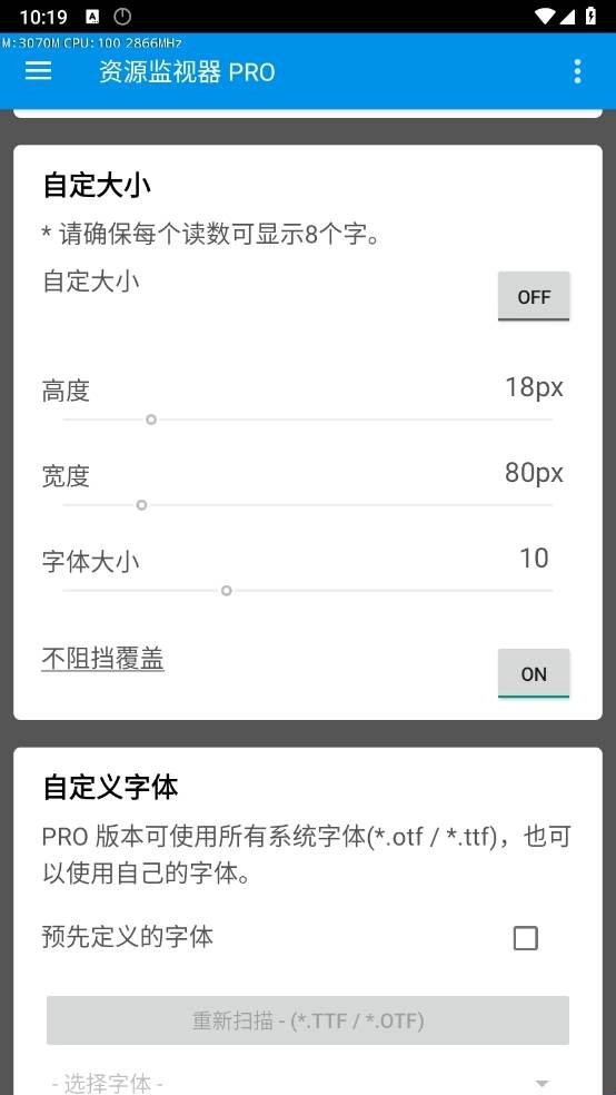 资源监视器PRO是一款能帮助用户实时检测手机内存的软件,无论是CPU使用率、温度等功能都可体验,首次使用需开启相关权限,显示屏的大小与位置也能轻松调节,方便大家更了解自己的手机状况。它在帮助用户全面监控的同时,还能让用户快速掌握手机资源情况,随意查看资源占用状态,感兴趣的话就来本站体验吧!