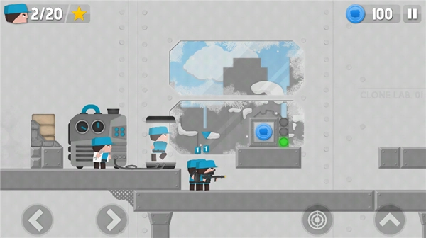 博士能够复制出属于自己的克隆小兵,这些小兵可以由玩家操控。玩家通过左侧操作来控制小兵的移动方向,右侧则负责控制射击以及向上跳跃的动作。
