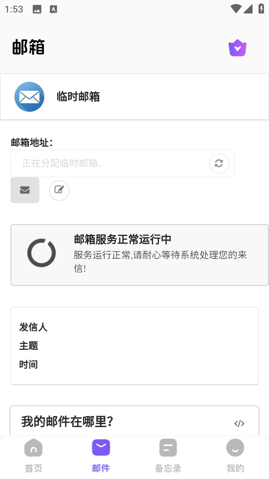 系统会自动分配临时邮箱地址,界面将呈现进度提示,按图示等待就行。