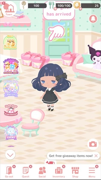 派对进行时,说不定会有三丽鸥明星突然现身带来惊喜!要是你运气好碰到特别来宾登场,派对结束后就能收到【可爱玩偶】作为礼物奖励,别忘了去小屋的房间里打开礼物盒看看呀
