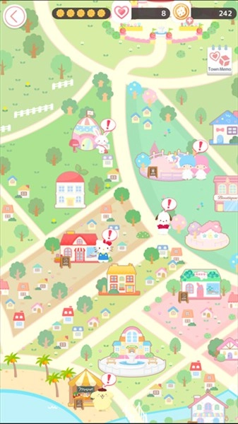 4、点击“Town”就会来到微笑小镇的场景,在这里可以和各位三丽鸥朋友进行互动与刷好感度。