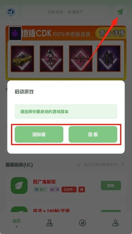 2、点击右上角的小飞机,选择我们需要优化画质的版本