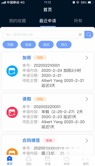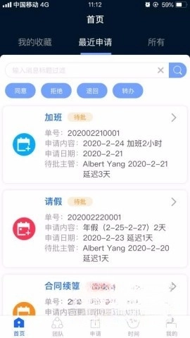 在最新的申请页面里,你能够查看加班申请、请假申请等各类信息,同时也能了解到这些申请的审批状态。