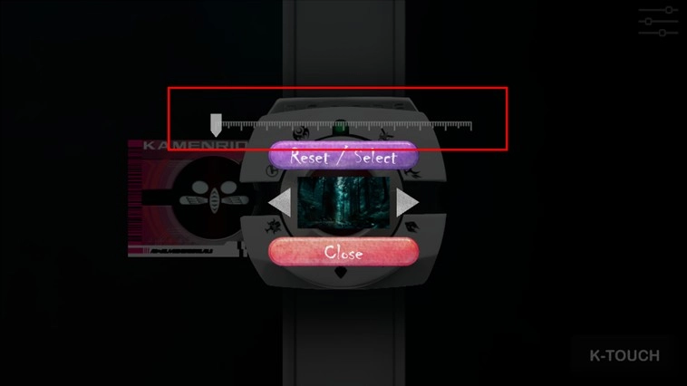 2、启动机关,出现骑士卡,左右滑动这个小窗口,可查看到电视剧中出现的所有骑士卡,选择一张进行变身。