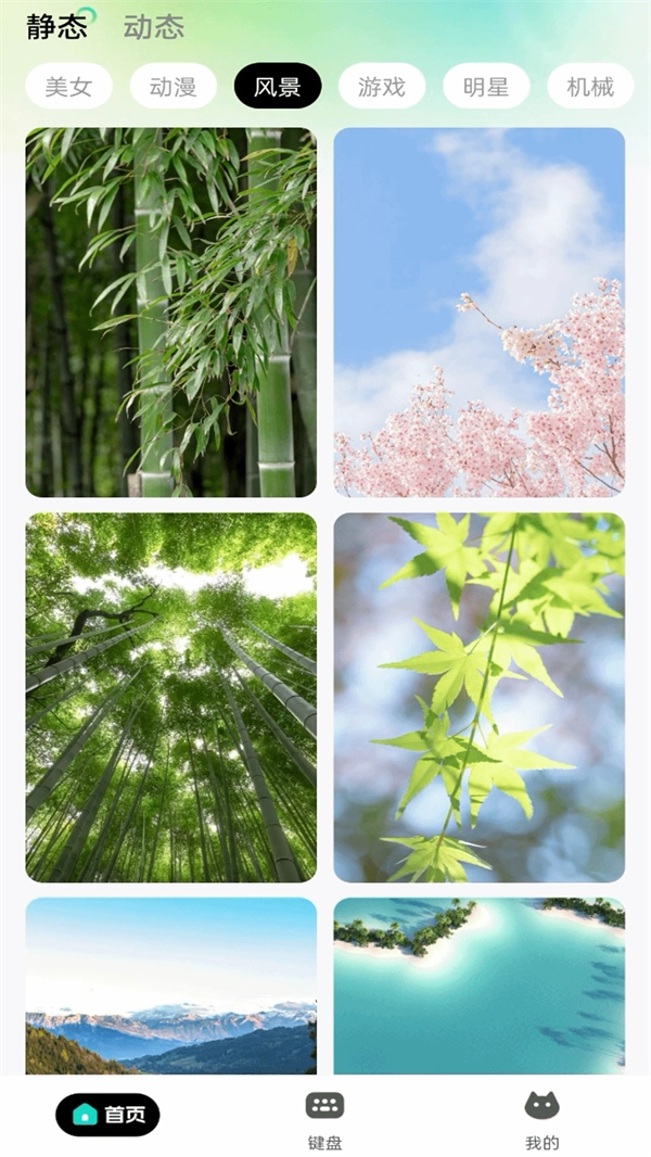 顺利进入主页后,映入眼帘的是各类不同分类的壁纸图片。